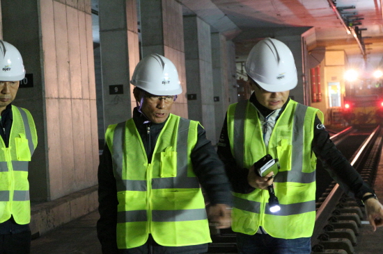 대전도시철도공사 차준일 사장이 21일 새벽 예방차원의 열차 안전운행 확보를 위해 터널을 비롯한 주요 설비에 대한 현장 점검 활동을 벌였다.