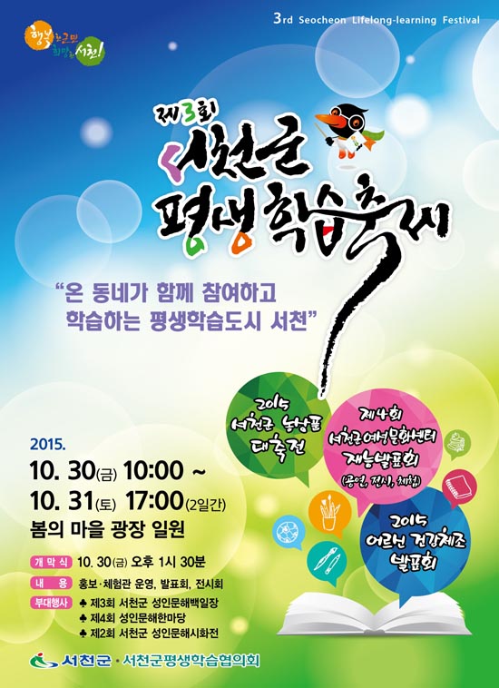 충남 서천군과 서천군평생학습협의회가 오는 30일 ‘온 동네가 함께 참여하고 학습하는 평생학습도시 서천!’이라는 주제로 제3회 서천군평생학습축제를 개최한다.