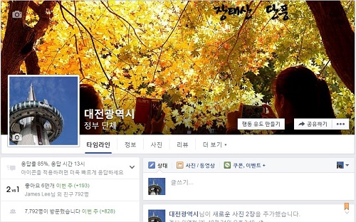 대전시 페이스북 페이지에는 대전시정은 물론 문화예술 공연 정보, 맛집, 여행 등 시민의 행복한 일상을 위한 콘텐츠들이 자리를 잡았다.