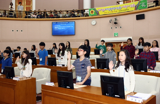 이날 어린이 의회에 참가한 학생들은 시의원과 간부 공무원으로 역할을 분담해 상임위원회별로 학생들이 직접 작성한 조례안 등을 제안 설명하고 찬반토론을 거쳐 심사한 후 다시 본회의에서 전자표결을 통해 의결하는 과정으로 진행하면서 생생한 의정활동을 체험했다.