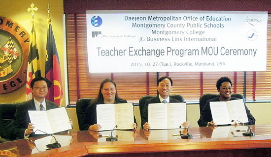 설동호 대전광역시교육감이 27일(화) 미국 몽고메리 컬리지(Montgomery College)에서 교사 및 학생교류를 비롯한 다양한 국제교류협력을 위해 몽고메리 카운티 교육청(Montgomery County Public Schools)등 3개 기관과 다자간 Mou를 체결하고 관련 대학과 학교를 방문, 시찰했다.