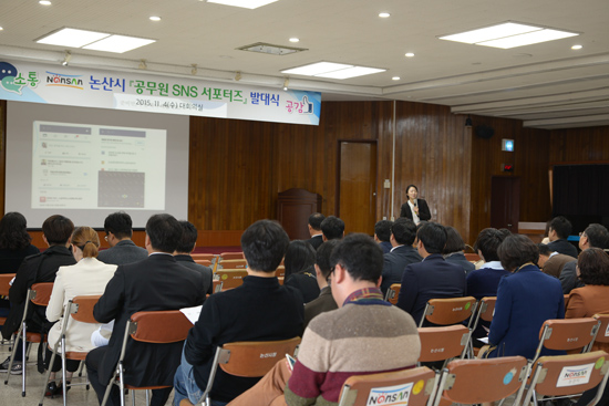 황명선 논산시장이 4일 시청 회의실에서 서포터즈 100여명이 참석한 가운데 소셜네트워크서비스(이하 SNS)를 활용해 시민과 관광객들에게 다양하고 유익한 정보를 제공하기 위해 '공무원 SNS 서포터즈 발대식'을 가졌다고 밝혔다.