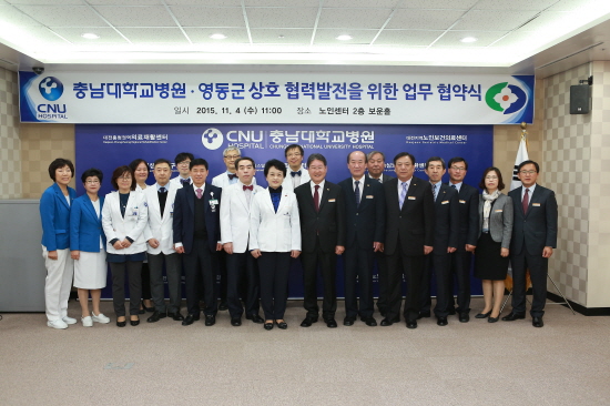 충남대학교병원이 4일 노인센터 2층 보운홀에서 영동군과 상호협력발전을 위한 협약을 체결했다.