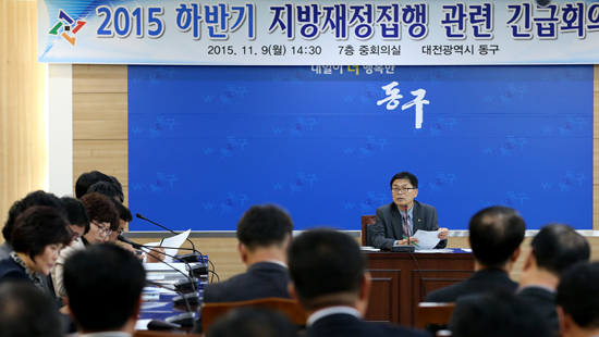 대전 동구가 9일 구청 중회의실에서 재정집행률을 높여 지역경제 활성화 및 이월·불용예산의 최소화 등을 위한 ‘2015. 하반기 재정집행 관련 회의’를 가졌다고 밝혔다.