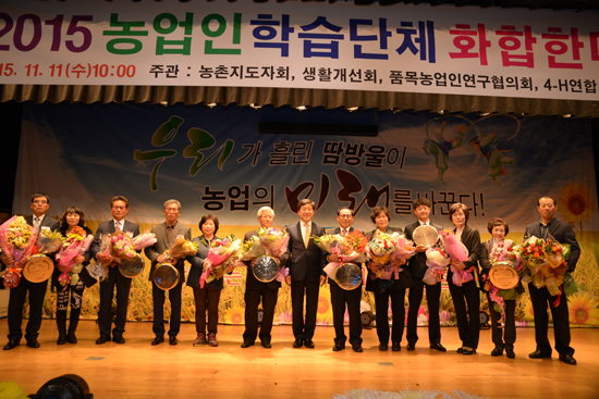 충남 논산시농업기술센터가 지난 11일 농업인의날을 맞이하여 농업기술센터 대강당에서 논산농업을 선도할 영농리더인 농업인학습단체회원들이 한자리에 모인 가운데 2015 농업인학습단체 화합한마당 행사를 개최했다.