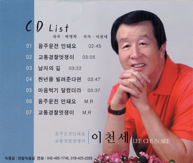 이천세(54)씨는 대전 중부경찰서 교통지도계장이다. 그가 어릴 적부터 꿈꿔왔던 가수의 꿈을 교통 경찰계라는 곳에서 이루어 세간의 화제를 모으고 있다. 음주운전자에 벌금용지, 비음주운전자에 본인 CD 선물불시에 실시하는 음주운전 단속시간. 이 계장은 매일 음주운전 단속시간이 되면 그의 타이틀곡 ‘음주음전 안돼요’를 틀어놓고 음주 운전자에게 벌금용지를, 비음주운전자에게는 자신의 음반을 나누어 주는 진풍경을 보여주고 있다. 음주운전 측정 대기열에 있던 운전자들은 훈방과 동시에 일종의 상장 같은 이천세 계장의 음반을 받으며 어리둥절해 하거나 ‘아~ 그 분!’ 하며 알아보고 반가워하기도 한다.“음주운전 단속시 힘들 때가 많아요. 단속하다 보면 어쩔 때는 심한 싸움, 욕설이 난무하기도 하지요.” 이 계장은 음주운전 단속의 어려움을 토로한다. 그렇지만 그의 노래를 틀며 음주단속을 하면서 한결 음주운전단속 현장도 부드러워지고 시민들의 호응도 커졌다. 그래서일까, 대전 음주운전자 비율이 작년에 비해 한층 떨어졌다는 후문. 벌써 그의 음반은 6000천여 장 발매되어 시민들에게 한층 가까이 다가섰다. 노래 실력 인정받은 가수협회 회원 경찰관이라고 실력을 우습게보면 안 된다. 이천세 계장은 이미 1984년에 노래 실력을 인정받아 가수협회에 등록한 실력파 가수. 그는 음주운전방지 캠페인을 보다 효율적으로 할 수 없을까 고민하다 지난 3월 ‘음주운전 안돼요’란 음주운전 캠페인 송을 생각해 내고 가사를 작사했다. 그리고 경찰밴드 지도교수이자 MBC악단장인 박병학씨에게 곡을 받아 올해 4월 음반을 냈다. 이 음반은 20년간 그가 교통경찰로서 음주단속현장을 생생하게 묘사한 곡으로 누구나 음주운전 단속현장을 그려볼 수 있게 쉽고 재미있게 쓰여 졌다.이 외 음반에 수록된 ‘교통경찰 멋쟁이’는 교통경찰에 대한 그의 사랑을 그렸고 ‘남자의 길’,‘천년을 빌려준다면’,‘마음먹기 달렸더라’는 평소 그가 애창하는 가요를 수록했다.“대형사고의 거의 90%가 음주운전으로 인한 사고입니다. 한순간 방심하다 불우한 사고를 겪게 되는 겁니다. 전국에서 음주운전으로 인한 정신적, 물질적, 경제적 피해가 얼마나 큽니까? 그런 음주운전 사고를 방지하기 위해 음반을 낸 거죠.”