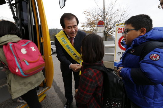 이날 수호천사로 나선 간부들은 이른 아침 학교에 도착해 통학차량에 직접 탑승하고 시골마을 구석구석을 돌아다니며 학생들의 안전띠를 채워주고 즐겁게 이야기를 나누었으며 학생들의 승하차를 도왔다.