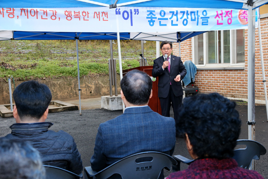 서천군보건소(소장 김재연)가 18일 판교면 마대1리 마을회관에서 노박래 서천군수와 서천군의회 의원, 마을주민 등 100여명이 참석한 가운데 ‘이’ 좋은 우수 건강마을 현판식을 가졌다.