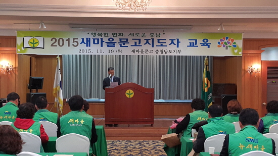 새마을문고충청남도지부(회장 김진수)가 19일 새마을문고 활성화 방안을 모색하기 위한 '2015 새마을문고지도자 교육'을 임동규 충청남도새마을회장을 비롯한 심우성 청양군의회의장 및 시․군 문고회장단, 문고관계자와 회원 등 100여명이 참석한 가운데 청양군 칠갑산 샬레호텔에서 개최했다.