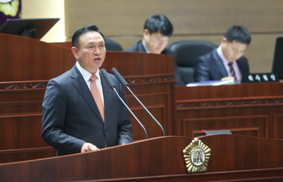 구본영 천안시장이 20일 오전 천안시의회 제189회 정례회에서 2016년도 예산안 제출에 따른 시정연설을 통해 시정운영 방향을 밝혔다.