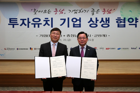 충청남도와 서천군은 20일 도청 대회의실에서 안희정 도지사와 노박래 서천군수를 비롯한 기업 임직원 및 관계자들이 참석한 가운데 (주)일광폴리머와 투자 협약을 체결했다고 밝혔다.