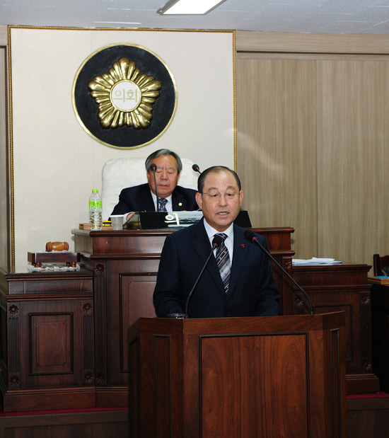 황선봉 군수가 25일 본회의장에서 열린 제218회 예산군의회 제2차 정례회에서 2016년도 예산안 제출에 따른 시정연설을 통해 올해 성과를 돌아보고 내년도 7가지 군정 운영 방향을 밝혔다.