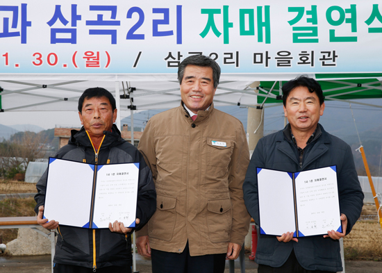 30일 삼곡2리 마을회관에서 개최된 1사 1촌 자매결연 체결식에서는 김동일 시장을 비롯해 (주)이건 문건수 대표와 주민 100여명이 참석했으며, 그간 공단 소재지 인근 지역의 결연이 아닌 남부권 마을 최초로 결연을 맺어 의미가 특별했다.