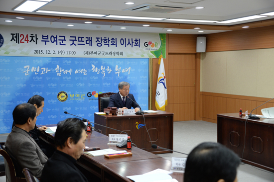 충남 부여군 굿뜨래 장학회는 지난 2일 군청 브리핑실에서 이용우 이사장을 비롯한 장학회 이사, 감사 등 20여명이 참석한 가운데 제24차 부여군굿뜨래 장학회 이사회를 개최했다.