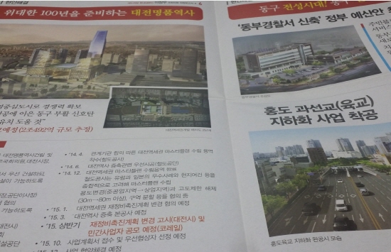 또한 5선에 도전하는 박병석 의원(대전서갑)도 자신의 지역구 개선 사업을 위한 예산 성과와 각종 내용을 담아 약 9만 3천세대에 맞춰 부수를 발행, 지역구민들에게 배포할 예정이라고 밝혔다.