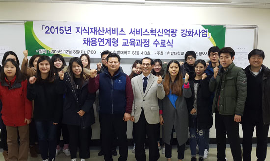 한밭대학교(총장 송하영)가 8일 오후 산학협동관에서 ‘지식재산서비스 서비스혁신역량 강화사업’의 일환으로 실시한 ‘미취업자 채용연계 교육’ 수료식을 개최했다.