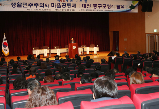 대전 동구가 9일 구청 공연장에서 주민 등 300여 명이 참석한 가운데 ‘생활민주주의와 마을공동체 : 대전 동구모형의 탐색’을 주제로 ‘제63회 동구포럼’을 개최했다고 밝혔다.