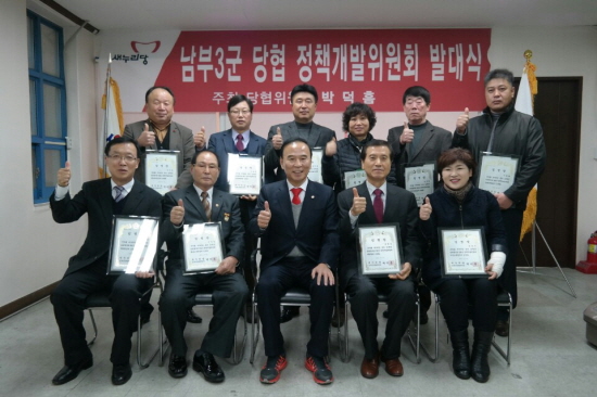 이에 박덕흠 당협위원장은 “정책개발위원회가 남부3군 발전을 위한 정책을 개발하여 전달하면 심도 있는 검토를 통해 국회에서 국가정책반영이 될 수 있도록 노력하겠다.”고 밝혔다. 아울러“총선 공약에서 활용 될 수 있는 부분이 있다면 적극적으로 검토하겠다.”고 말했다.