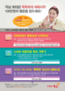 우체국 「작심 365일 똑똑하게 새해시작 똑똑한 새해맞이 우체국 스마트금융 이벤트」에 관한 자세한 사항은 전국 우체국이나 우체국예금보험 홈페이지 (www.epostbank.kr) 또는 우체국금융 고객센터