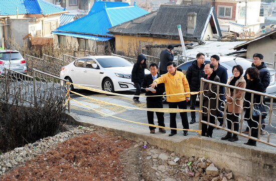 박용갑 중구청장이 5일 정비사업 장기화에 따라 붕괴위험 및 범죄예방이 우려되어 정비가 시급히 요구됐던 목동 등 정비구역내 폐·공가 4개동 철거를 마무리한 현장을 방문했다.