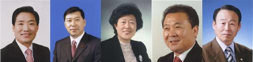 ▲ 김홍장(우. 당진1), 오배근(한. 홍성1), 이선자(한. 비례), 고남종(한. 예산1), 이창배(한. 서산1) 도의원<좌측부터>