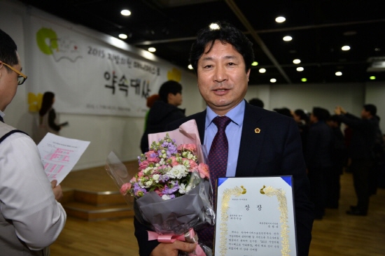 세종특별자치시의회 윤형권 의원이 7일 오후 서울 영등포아트홀에서 한국매니페스토실천본부에서 주관한‘2015 지방의원 매니페스토 약속대상’수상식에서 광역의원부문 최우수상을 받았다.