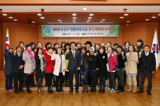 유성구가 11일 유성구청 대회의실에서 2016 유성구 생활체육교실 강사 34명의 위촉장 수여식을 갖고 건강도시 유성을 향한 힘찬 발걸음을 내딛었다.