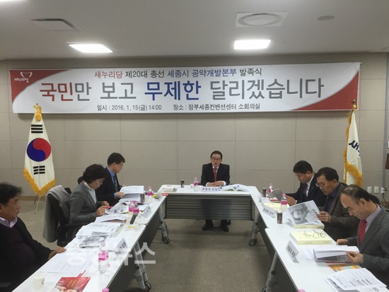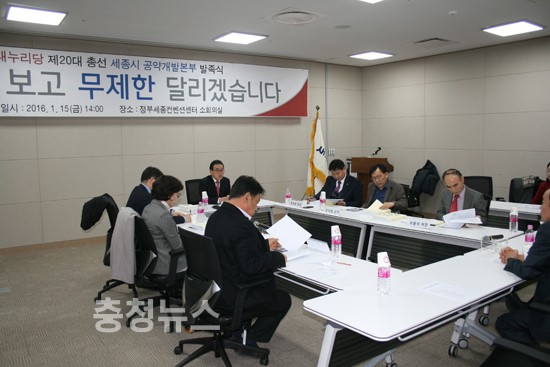 새누리당 세종시당(위원장 유한식)은 15일 오후 정부세종컨벤션센터 소회의실에서 세종시 공약개발단을 발족하고 1차 회의를 진행했다.