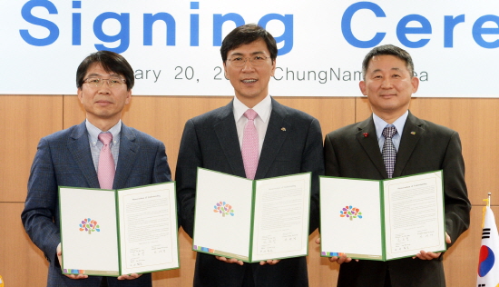 안희정 충남도지사는 20일 도청 중회의실에서 서철모 천안시 부시장, 황득규 삼성전자 부사장, 키코시쇼시 일본 도레이(Toray) 이사, 정태경 스테코 대표 등과 함께 스테코가 500억 원을 천안외투지역에 투자하는 내용의 협약(MOU)을 체결했다.