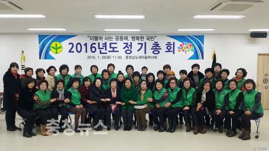 충청남도새마을부녀회(회장 김옥수)는 26일 오전 11시 공주시새마을회관 4층 회의실에 도내 15개 시군 회장 및 부회장으로 구성된 대의원 46명이 참석한 가운데 2016년도 충청남도새마을부녀회 정기총회를 개최했다.