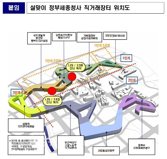 행정중심복합도시건설청(청장 이충재, 이하 행복청)은 28~29일(세종청사 6동-1)과 내달 4~5일(세종청사 5동-1) 정부세종청사에서 행정중심복합도시(이하 행복도시) 주민과 공무원을 위해 직거래장터를 운영한다고 28일 밝혔다.