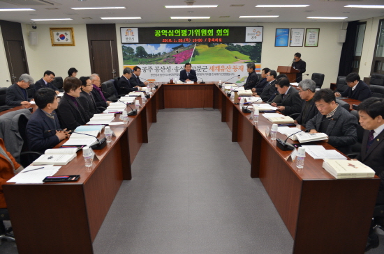 충남 공주시(시장 오시덕)가 민선 6기 공약의 효율적인 추진을 위해 3개분야 총 21명의 위원으로 구성된 ‘공약심의평가위원회’ 회의를 개최했다.