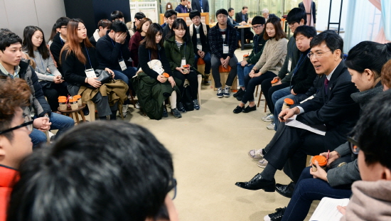 안희정 충남도지사가 1일 도청 휴게실인 ‘내포마루’에서 도청에 근무 중인 아르바이트 대학생과 대화의 시간을 가졌다.