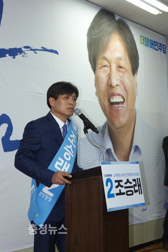 양승조 국회의원(천안시 갑)은 “(이번 20대 총선은) 대한민국 정치에 새로운 변화를 선도할 참신한 인물에게 국민대표의 기회가 부여되어야 할 선거”라며 “조 예비후보는 충청의 새 시대를 이끌 차세대 리더이다. 저와 함께 20대 국회에서 충청시대를 이끌어갈 기회를 달라”고 당부했다.