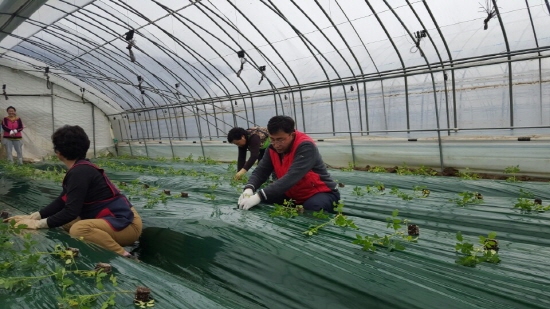 정연상 국회의원 예비후보(새누리당, 공주시)가 휴일인 13일 이인면 이인리 토마토재배 농가를 찾아 토마토 묘목 식재작업에 참여했다.