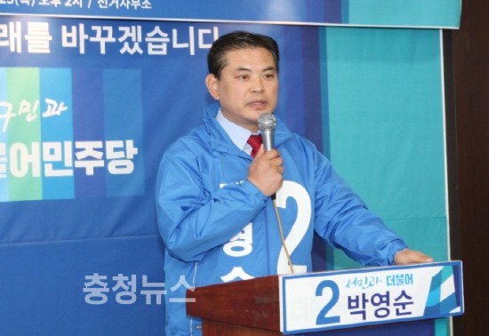 더불어민주당 박영순 대덕구 국회의원 예비후보가 25일 대덕구 오정동에 마련한 선거 사무실에서 당원 및 지지자 200여명과 함께 출마기자회견 및 공약발표회를 갖고, 오는 4월 13일 대덕구 국회의원 선거에 출마할 것을 공식 선언했다.