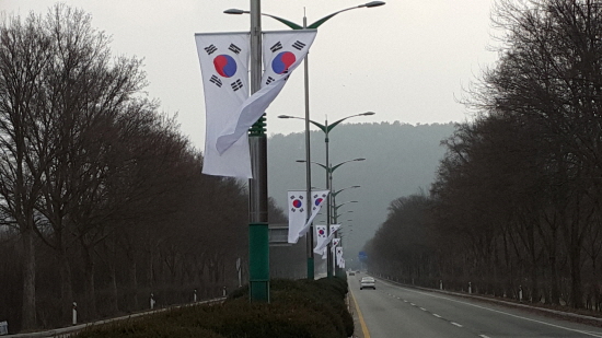 ▲ 합동 임관식 준비 태극기거리 조성 (사진제공- 계룡시청)
