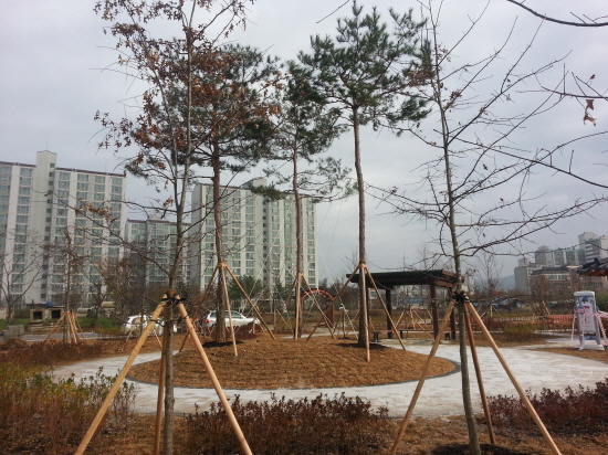 생활권 주변 녹색 쌈지 숲 조성, 십자로 소나무 화분 놓아