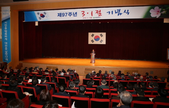 대전광역시(시장 권선택)가 제97주년 3‧1절을 맞아 1일 오전 10시 시청 대강당에서 권선택 대전시장을 비롯해 애국지사와 유가족, 시민 등 700여명이 참석한 가운데 기념행사를 갖고 호국선열들의 숭고한 뜻을 기렸다.