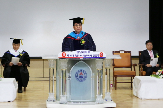 한남대학교 제16대 이덕훈(59) 총장이 2일 오후 2시 교내 56주년기념관 서의필홀에서 취임식을 가졌다.
