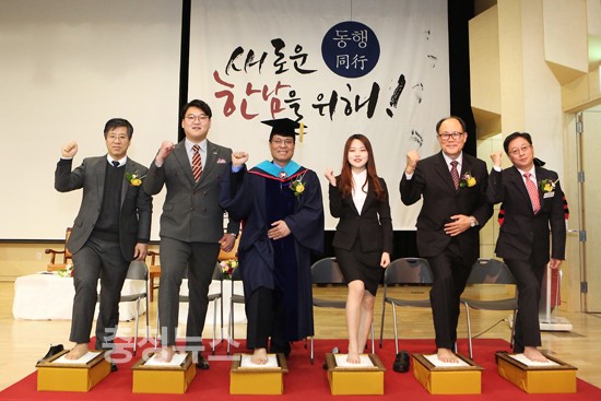 이 총장은 취임식에서 학생, 교수, 직원 대표들과 함께 구두와 양말을 벗고 점토 반죽에 발도장을 찍는 ‘풋 프린팅’ 퍼포먼스를 해 눈길을 끌었다.