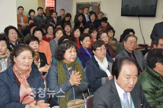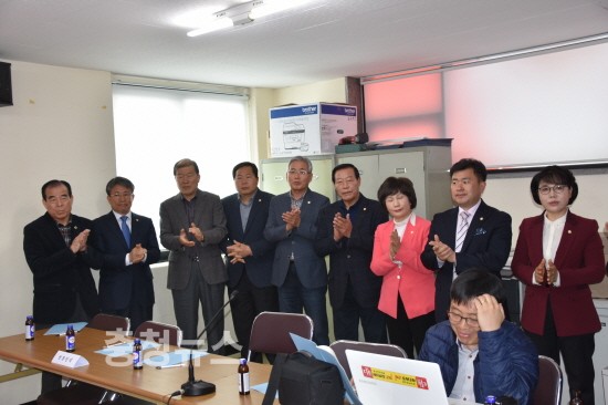 ▲ 이 날 출마기자회견에는 지역구 충남도의원, 보령.서천 시.구의원들이 대거 참석해 눈길을 끌었다.