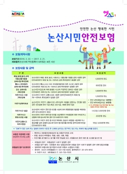 가입대상은 논산시에 주민등록을 두고 거주하는 모든 시민으로, 별도의 보험가입 절차나 조건없이 자동으로 보험수익자가 되며, 보장기간은 2016년 2월 22일부터 2017년 2월 21일까지다.