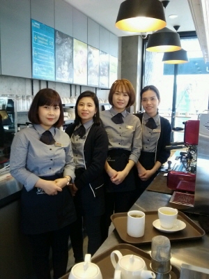 ▲ 글로벌가족센터 내 '어반 포래스트 카페'근무하는 다국적 바리스타들 (사진제공- 아산시청)