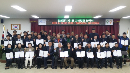 세종특별자치시 전의면(면장 이권화)이 15일 전의면 대회의실에서 1사1촌 자매결연 협약식을 개최했다.