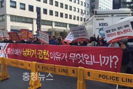 이들은 또 " 이번 공천은 예산 홍성 내포신도시의 발전을 가로막고 지역민심을 배반한 결정" 이라면서 "홍성 예산 주민들은 절대로 용서치 않을 것"이라고 목소리를 높였다.