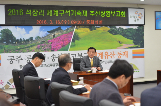 공주시(시장 오시덕)는 지난 16일 오시덕 공주시장을 비롯한 간부공무원들이 참석한 가운데 ‘2016 석장리 세계구석기축제 추진상황 보고회’를 갖고 지난해 도출된 문제점을 개선하고 프로그램을 새롭게 개편하는 등 명품 축제로의 도약을 위해 총력을 다하고 있다고 17일 밝혔다.