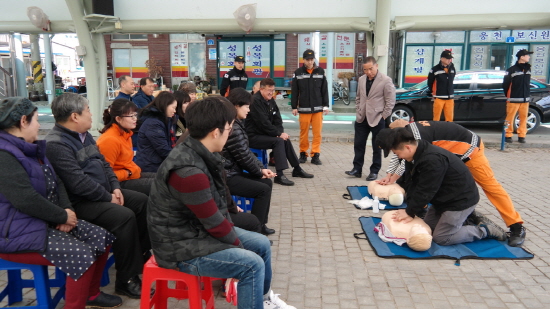 ▲ 전통시장에서 가졌던 심폐소생술 교육 장면 (사진제공- 보령시청)