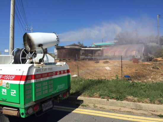 또한 양돈농가 20가구에 구제역 전담공무원을 배치해 주1회 이상 예찰 및 현장점검을 수행하고 있으며, 주2회 양돈농가 주변 순회 소독을 실시하는 등 구제역 차단을 위한 방역활동을 강화하고 있다.