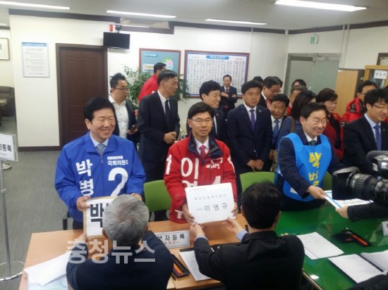 새누리당은 중구 이은권 후보, 서구갑 이영규 후보, 서구을 이재선 후보, 유성갑 진동규 후보, 유성을 김신호 후보가 등록을 마쳤으며 동구 이장우 후보와 대덕구 정용기 후보는 내일 등록을 예정했다.